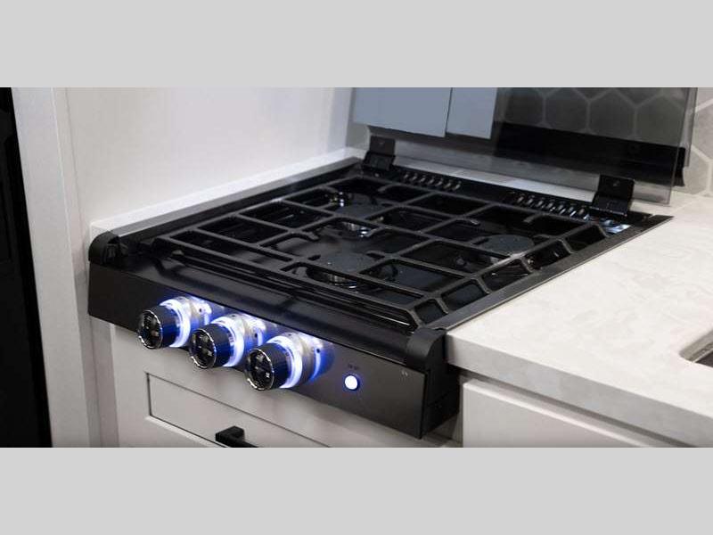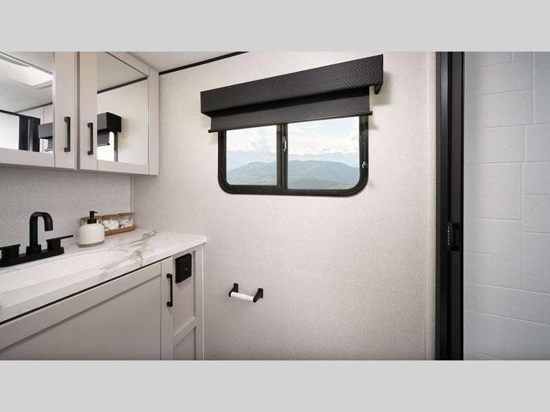 Additional stand-out features include a Rock Solid jacks helps you achieve a level trailer with less effort and time. You algo have an on demand water heater, and a Magnum Truss roof system, tested to withstand 4,500 lbs! Inside, you'll be met with residential-style seamless countertops throughout, spacious handcrafted, hardwood door/drawer fronts, and residential vinyl flooring throughout that will be easy to keep clean.