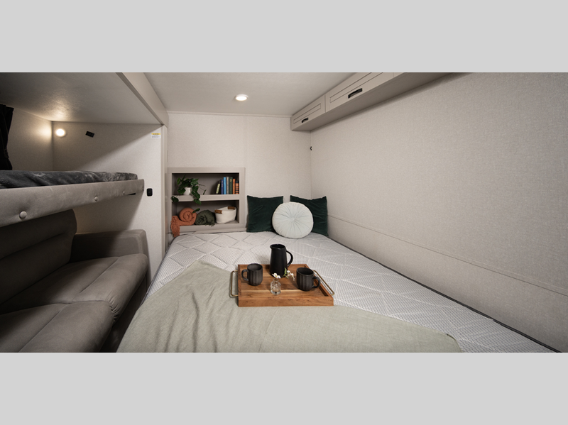 Sleeps 9 Slides 4 Length 42 ft 11 in Ext Width 8 ft 6 in Ext Height 13 ft 4 in Int Height 8 ft 6 in Interior Color Dune Gray Hitch Weight 2800 lbs GVWR 18100 lbs Dry Weight 15560 lbs Cargo Capacity 2540 lbs Fresh Water Capacity 75 gals Grey Water Capacity 87 gals Black Water Capacity 50 gals Tire Size 215/75R17.5"H Furnace BTU 40000 btu Number Of Bunks 1 Available Beds King Refrigerator Type GE Residential Refrigerator Size 21 cu ft Cooktop Burners 4 Number of Awnings 2 LP Tank Capacity 40 lbs. Water Heater Type On Demand Tankless AC BTU 30000 btu TV Info LR 4K Smart LED HDTV, BR 32" 4K Smart TV Awning Info 11' and 20' Electric with Integrated LED Lights Axle Count 2 Washer/Dryer Available Yes Number of LP Tanks 3 Shower Type Shower w/Seat Similar Floorplans