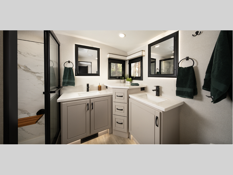 Jayco North Point fifth wheel 382FLRB highlights: Front Living Area Dual Sink ... more about North Point 382FLRB