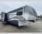 Take your camping trips up a notch in this luxurious fifth wheel! Your family will love to visit in the rear living area on the tri-fold sofa or theater seat, plus there is a free-standing table here to dine at together. The TV lift and fireplace will make it feel more like home, along with the kitchen island and residential refrigerator. Head up the steps to find cabinets for an optional washer and dryer, a full bath with a large bath vanity, plus a private bedroom up front that you are sure to love. When you aren't resting on the king bed slide out, read a book on the front window seat, or watch a movie with the bedroom TV provided. There is even a bedroom fireplace for added comfort. And check out the exterior with two power awnings with LED lights and a 32" TV!